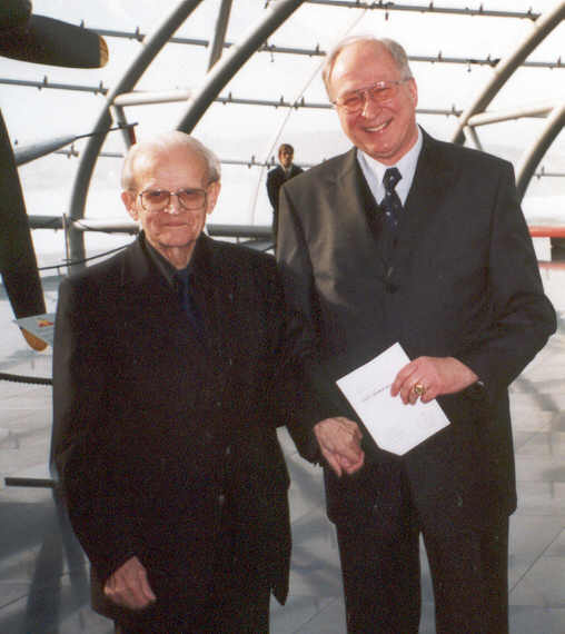 Jentzmik (rechts), Oberstudienrat und Verleger aus Limburg, beim Festakt mit